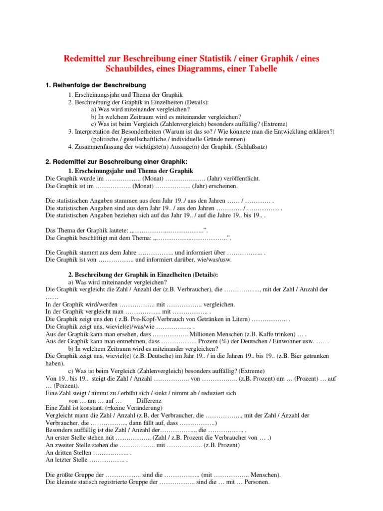 Schriftlicher ausdruck grafik beschreiben die vorliegende grafik zeigt… / stellt… dar/ informiert über…. Keine zusammenfassung, das ist eine nacherzählung vor 16 wochen 1 stunde; Der über das/zum thema x sprechen wird. Heute sprechen wir über das thema eine präsentation halten auf allen sprachniveaus b1, b2, c1. « häufig gestellte fragen ».